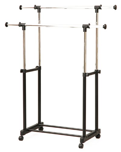 我家では冬物の重衣料が合計で20着、ドレスシャツが10着も収納できました。しかし、気を付けなければいけないのが、平行に並んだバーの間が約30cmと意外と狭く、肩幅50cm程度の男性物の場合ハンガーを斜めにして掛ける必要があり、その場合クリーニング店等で貰えるフック固定式タイプのハンガーは使えません(衣服がねじれて生地を傷める恐れがあります)