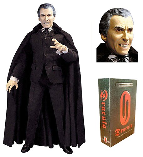 名門ハマーフィルムの代表作『吸血鬼ドラキュラ』(1958年)が世界初の商品化。もちろんハマーモンスターがこのように商品化されること自体初。やってくれたのは、やはり本国イギリスのメーカー『プロダクト・エンタープライズ』。ドゥークー伯爵でお馴染みの名優、クリストファー・リー扮する、狂気のドラキュラ伯爵をリアルに再現。劇中の雰囲気まで伝わってきそうな血走った目、開かれた口からのぞくキバなど、細かいところもしっかり造型。弁護士ハーカーの日記、キャンドルホルダー、そして十字架と、ドラキュラにまつわる付属品が充実。ホラーファンが長年待ちわびた夢のアイテム。