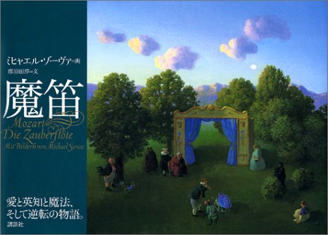世界のどこかで、誰かの演出により、いつも上演されていそうなモーツァルトのオペラ「魔笛」の絵本バージョン。濃淡をきかせた緑色と明暗のある青色を基調にした、重厚な素朴派絵画とでも呼びたいミヒャエル・ゾーヴァの絵が、何より魅惑的。 たとえば永遠の子どもと呼ばれる3人の天使は、ハイソックスにランドセルや運動着姿という普通の少年のコスチュームだけれど、よく見ると顔や体つきが大人でギョッとさせられる。こういう登場人物たちの斬新な現代性と、背景の樹木や山や空の描写に漂う、ドイツ浪漫派絵画を思わせる神秘性が、とてもよく融合している。ゾーヴァが舞台美術を手がけた1998年フランクフルト歌劇場での「魔笛」は、終了後観客の賛辞の歓声と足踏みが地鳴りのようだったらしい。この絵本は、その上演のためにゾーヴァが描き下ろした、舞台美術と衣装の原画をもとに構成されている。
